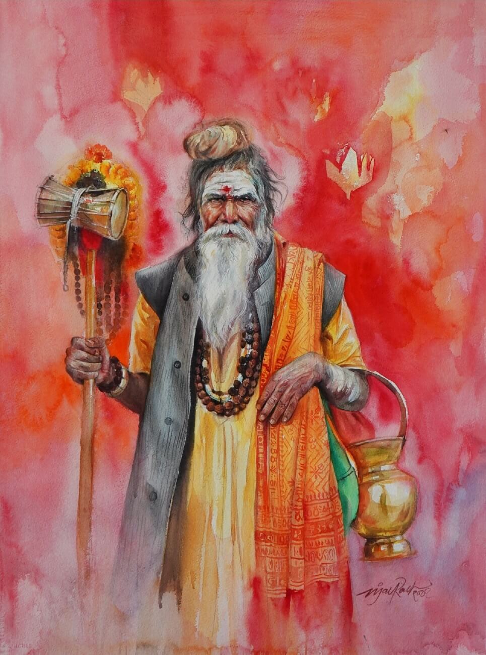 Sajal MitraSajal K. Mitra uses the difficult and challenging medium of water colour, painting what